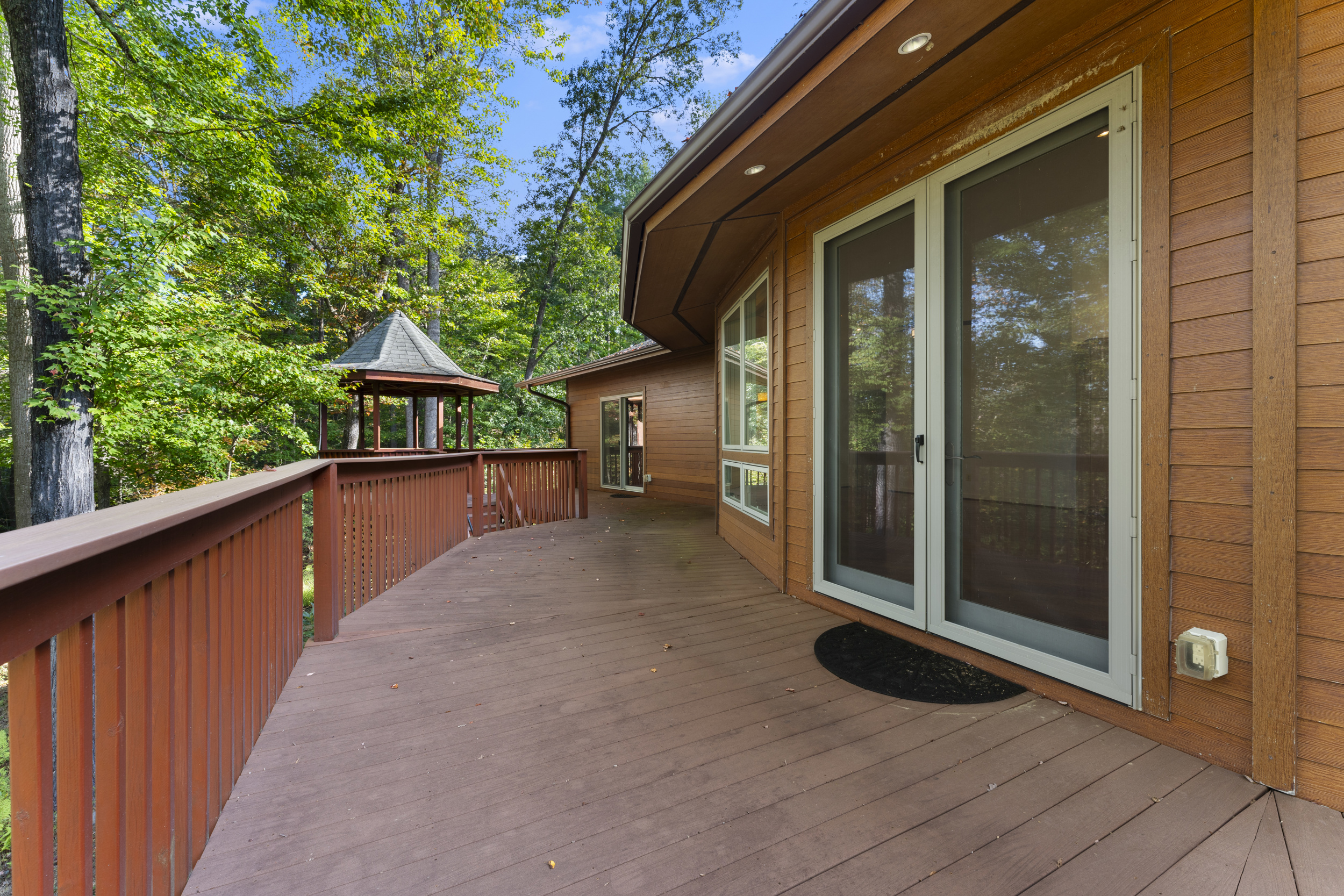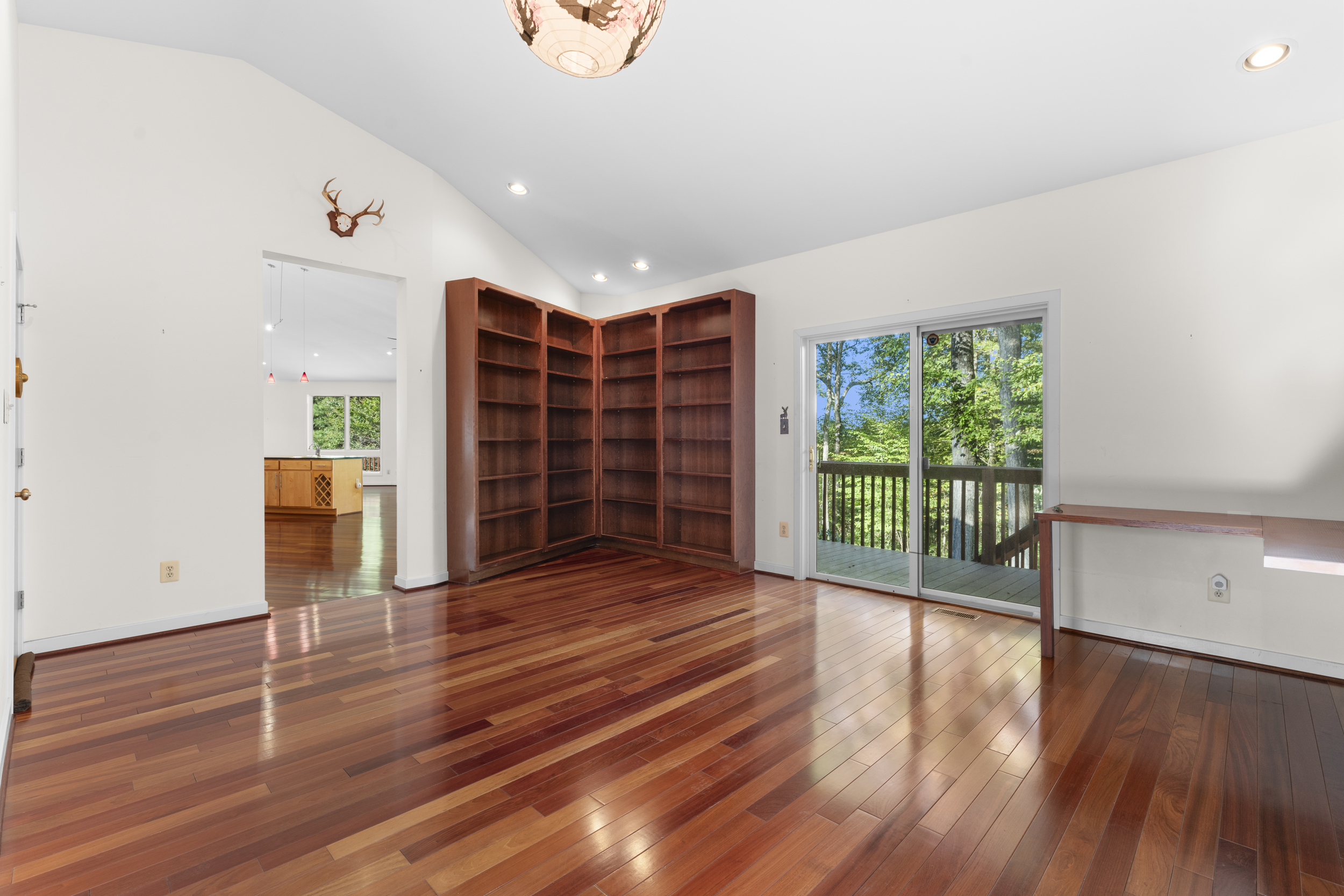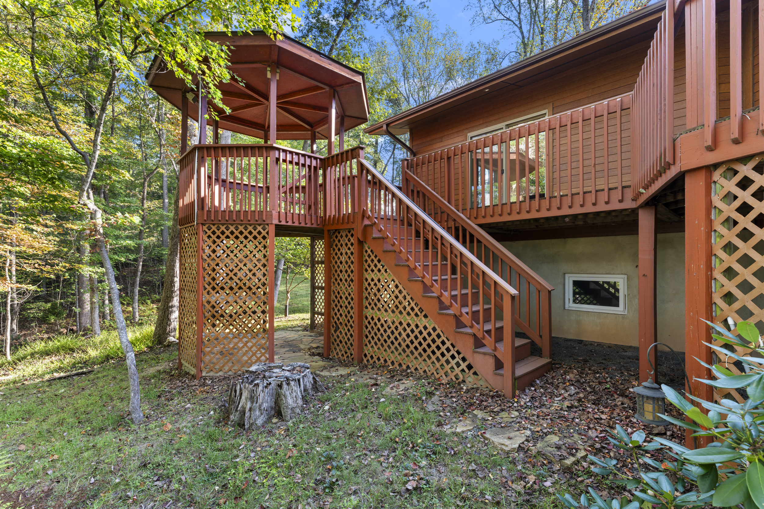This unique property invites one to pause, slow down, and explore slowly, as its many charms are not immediately apparent. Approaching the front door, the enormous wrap-around deck invites an impromptu detour to take in the elevated western view that begins to reveal itself. The airy gazebo at the far end calls for exploration, but then the sudden Blue Ridge Mountain view comes into sight. Framed by majestic, tall oak trees and smaller understory trees, the view could be broadened by an artful arborist. This window to the mountains gives a front-row seat to the never-ending circle of changing light, weather, and seasons of the Blue Ridge.