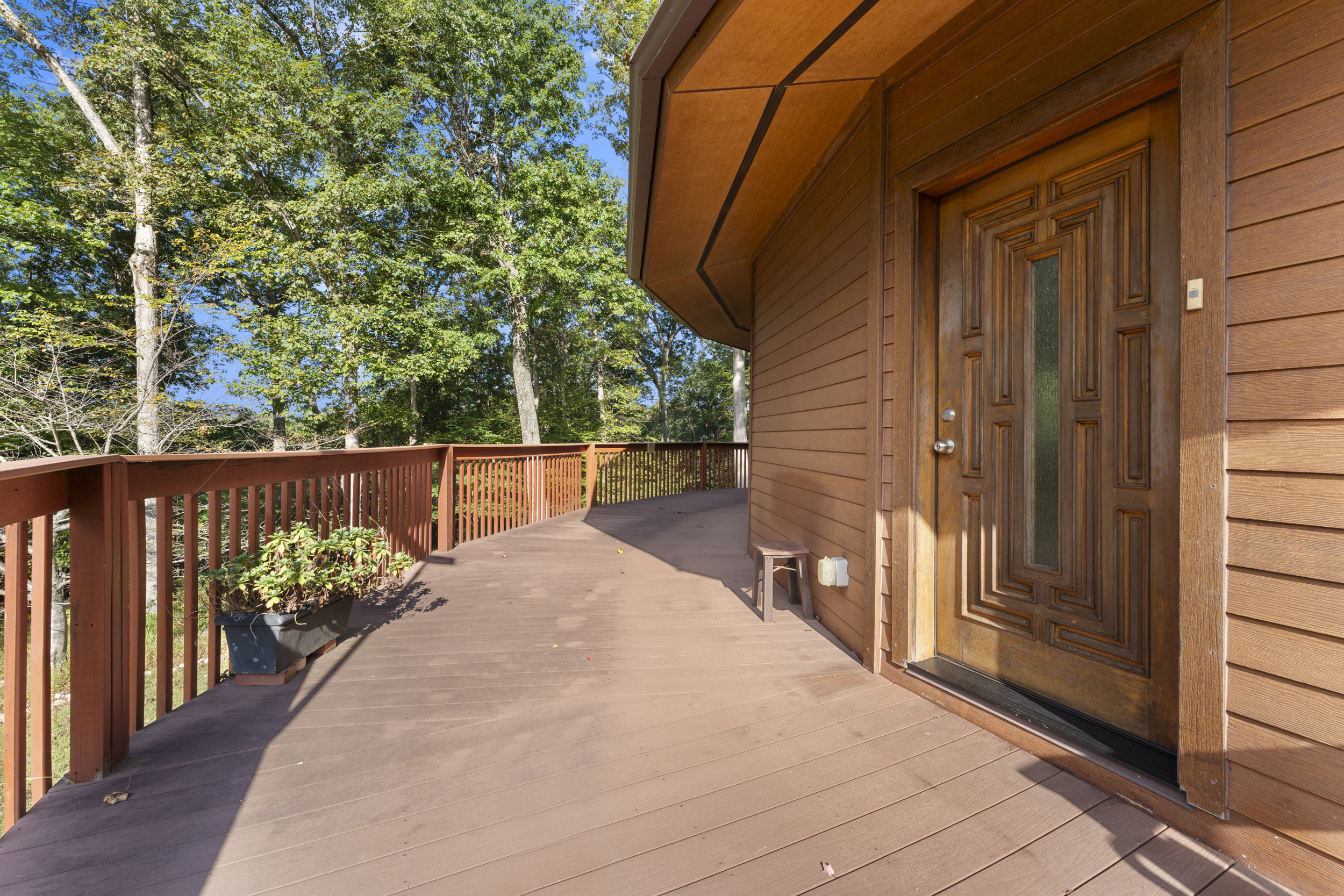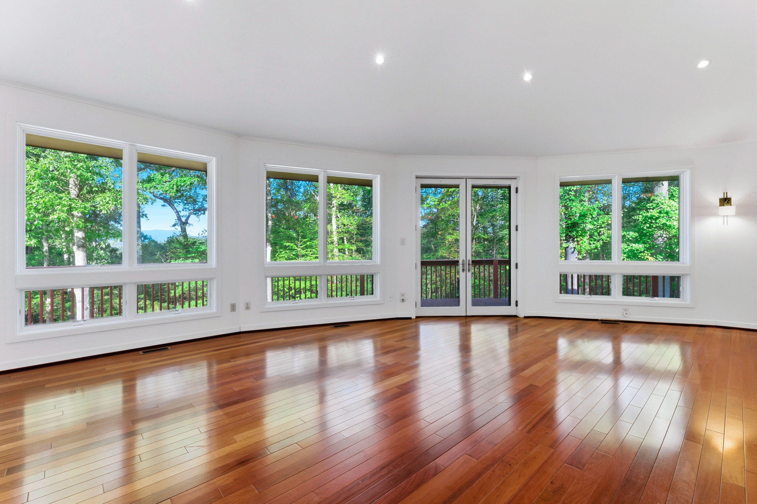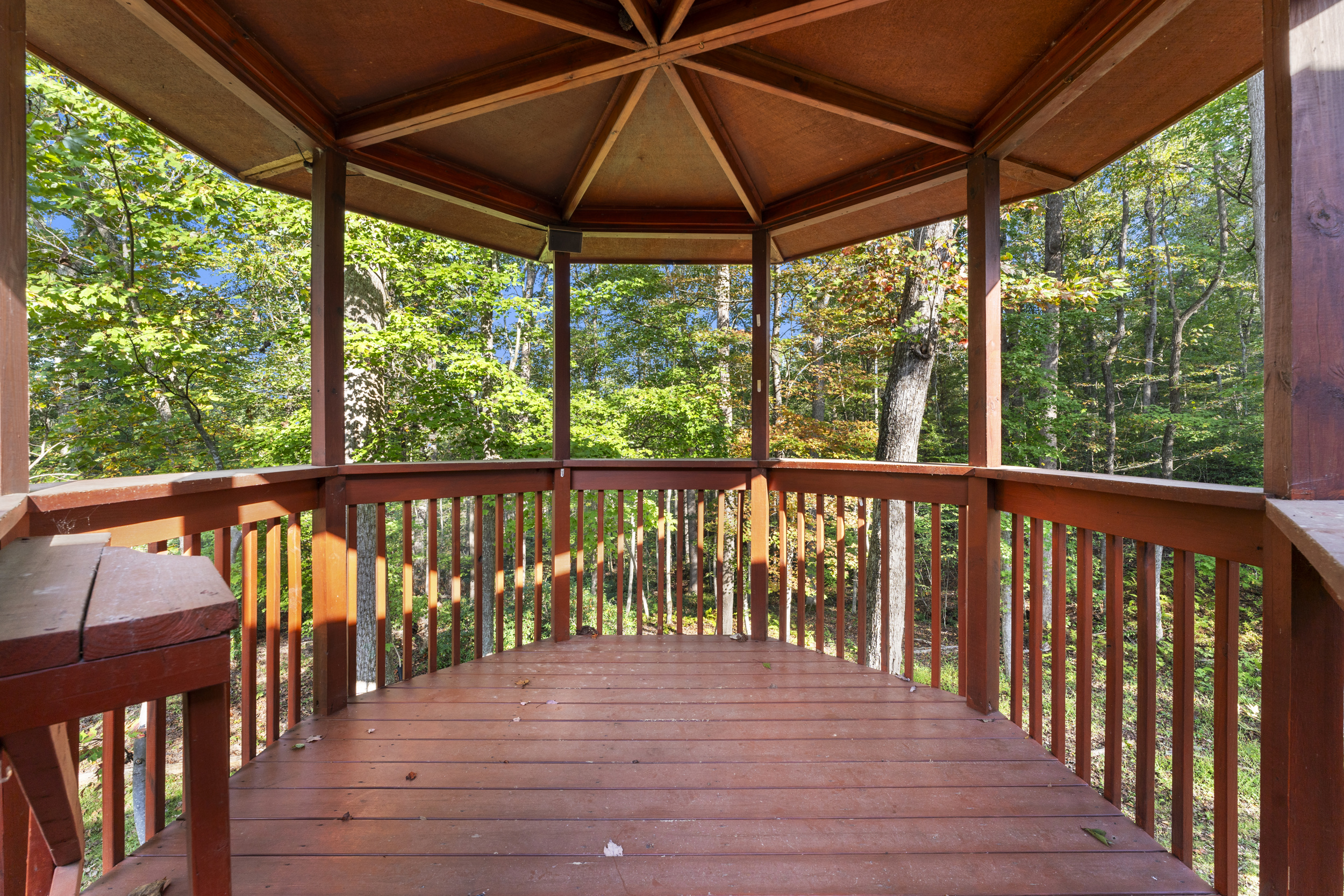 This unique property invites one to pause, slow down, and explore slowly, as its many charms are not immediately apparent. Approaching the front door, the enormous wrap-around deck invites an impromptu detour to take in the elevated western view that begins to reveal itself. The airy gazebo at the far end calls for exploration, but then the sudden Blue Ridge Mountain view comes into sight. Framed by majestic, tall oak trees and smaller understory trees, the view could be broadened by an artful arborist. This window to the mountains gives a front-row seat to the never-ending circle of changing light, weather, and seasons of the Blue Ridge.
