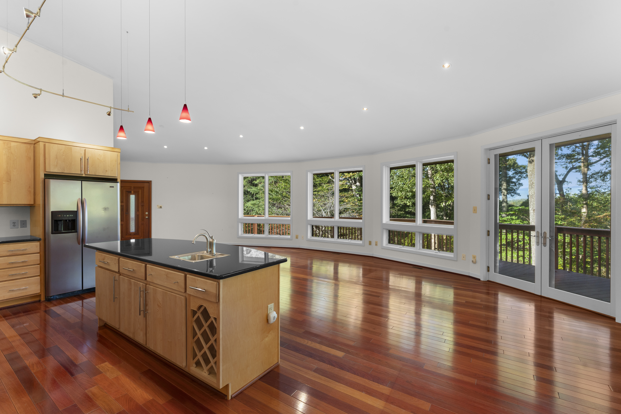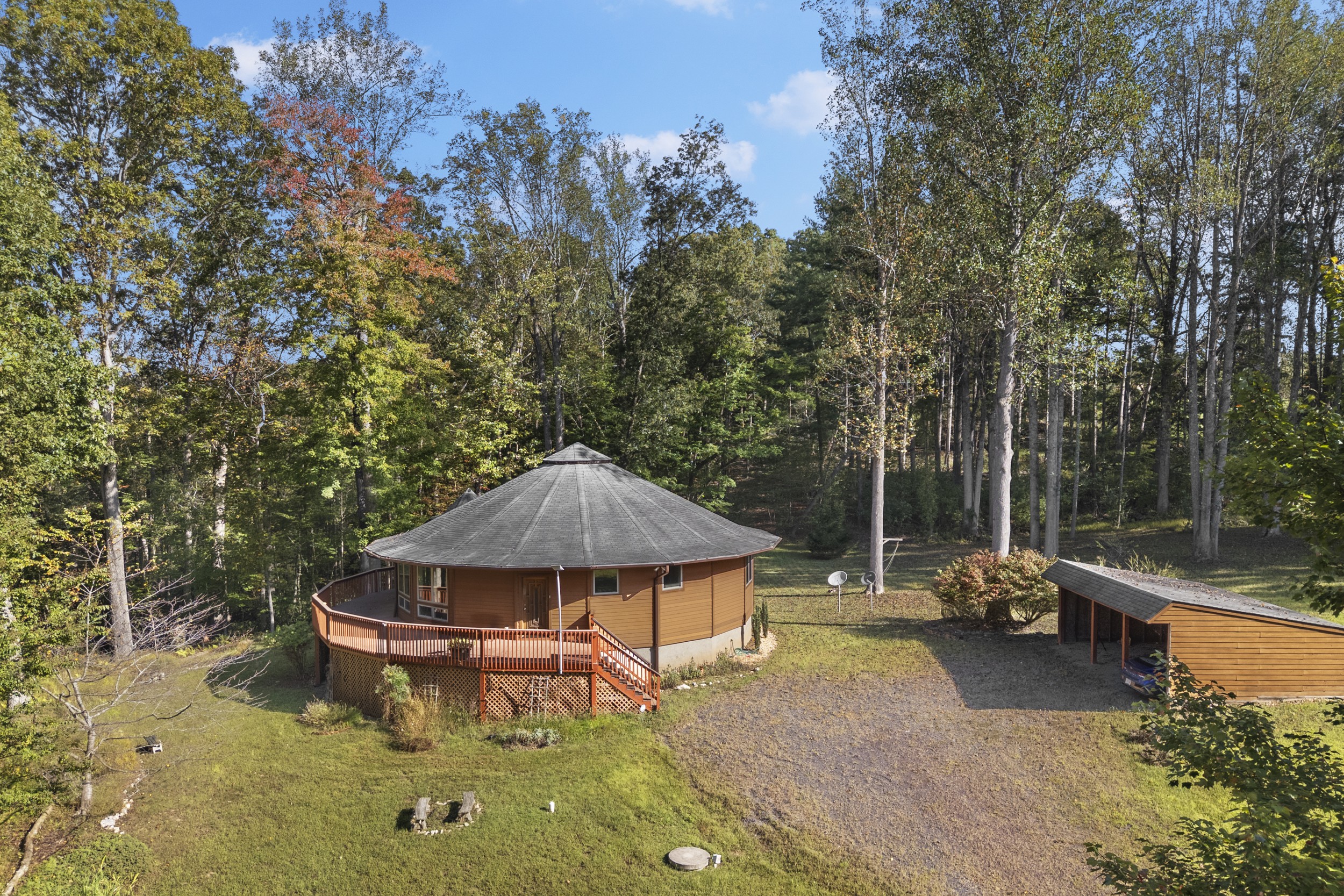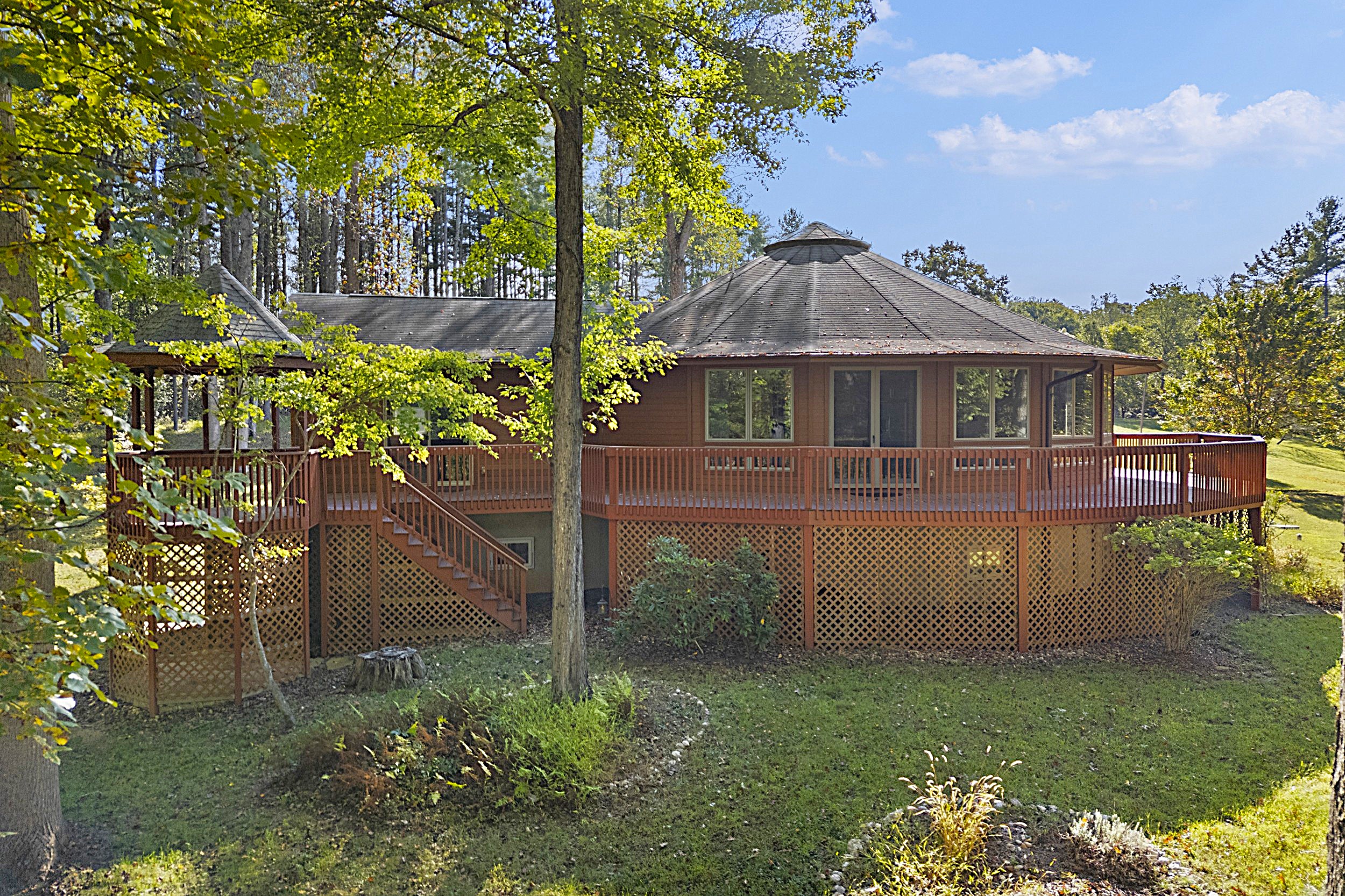 Think outside the box, quite literally, with this exquisite 4,000 square foot Deltec “round house” in the heart of the Piedmont. Rethink what a “cabin in the woods” can be. The circle has long been an important symbol in many cultures and this unusual home blends the exotic and the familiar with seamless grace. The highly efficient design features a panoramic, curving wall of windows that brings the outside in, along with a modern yet comfortable interior.