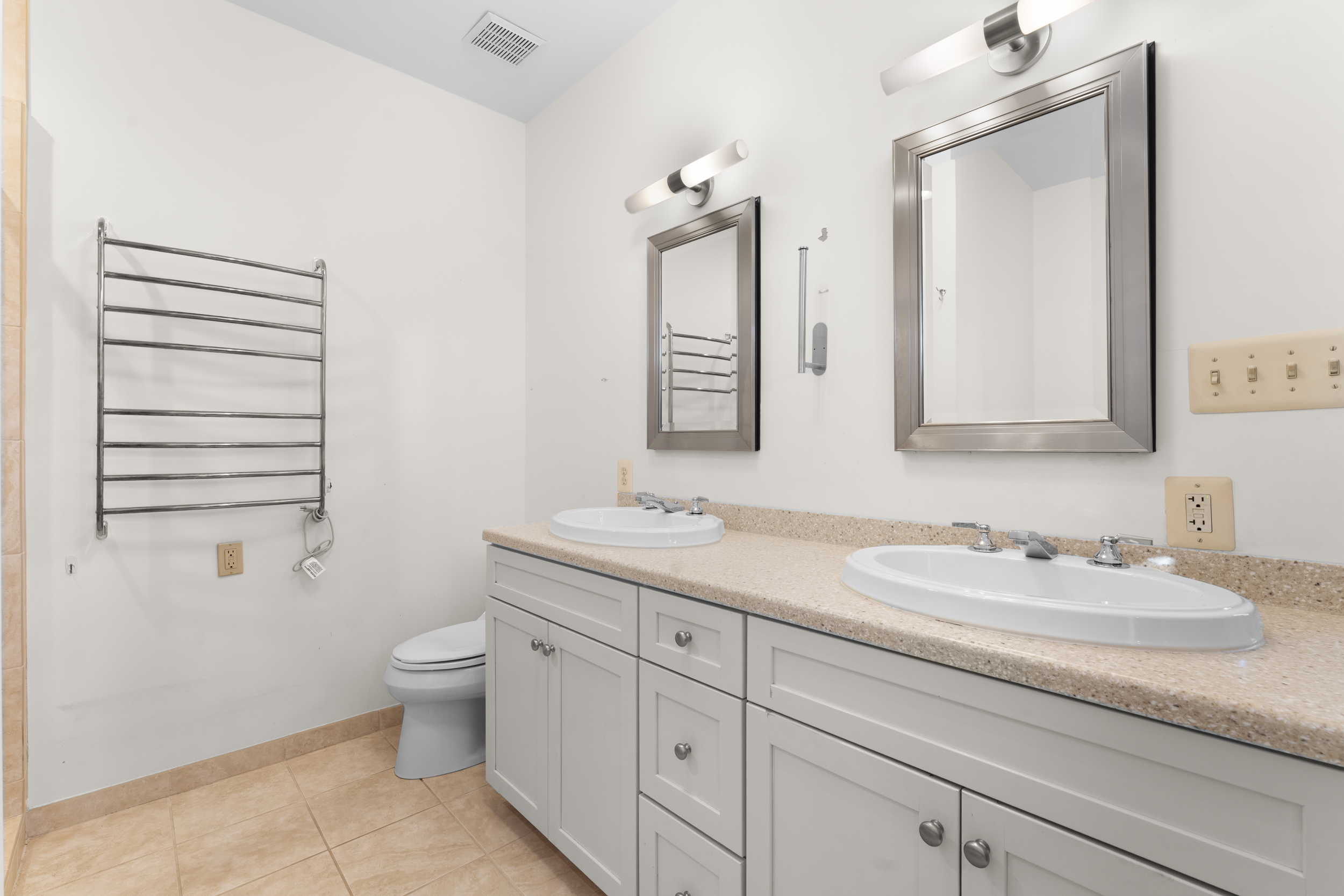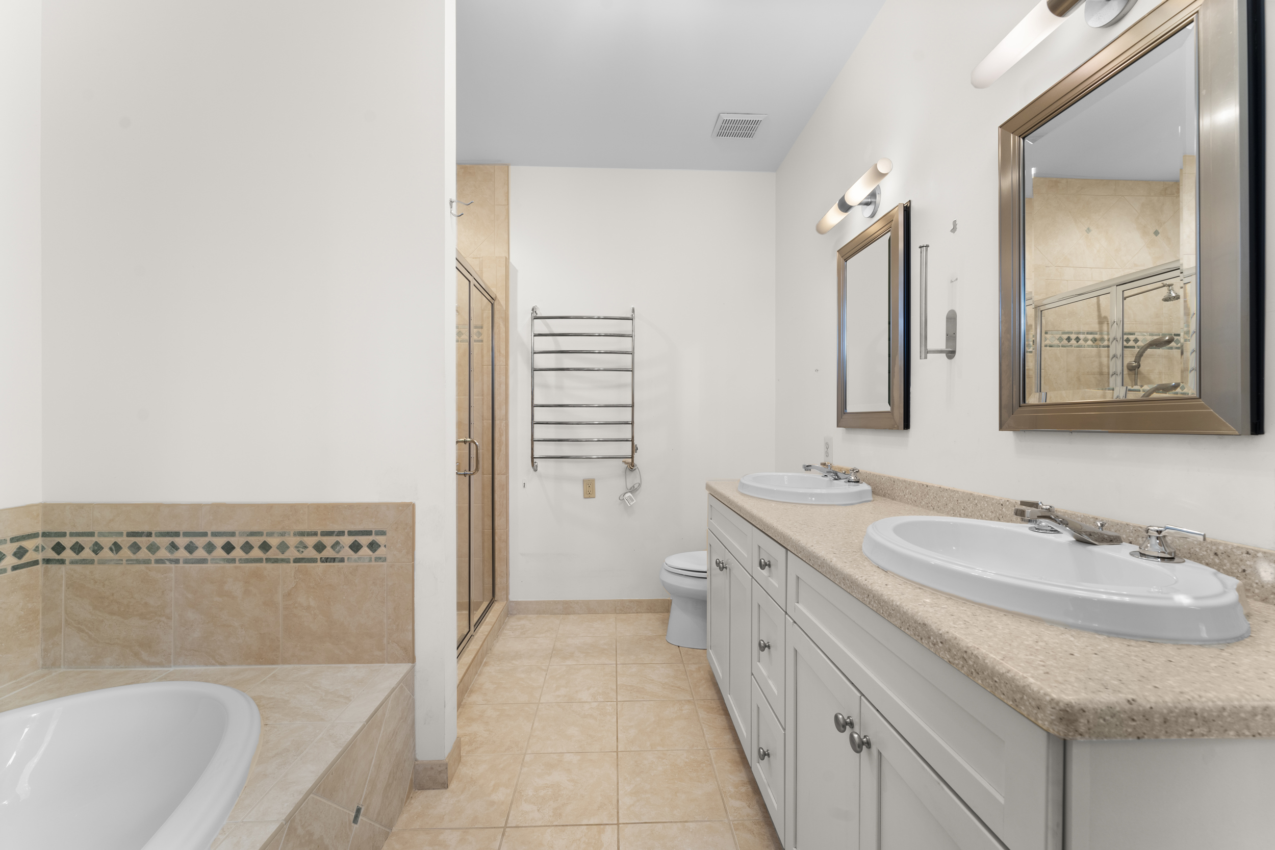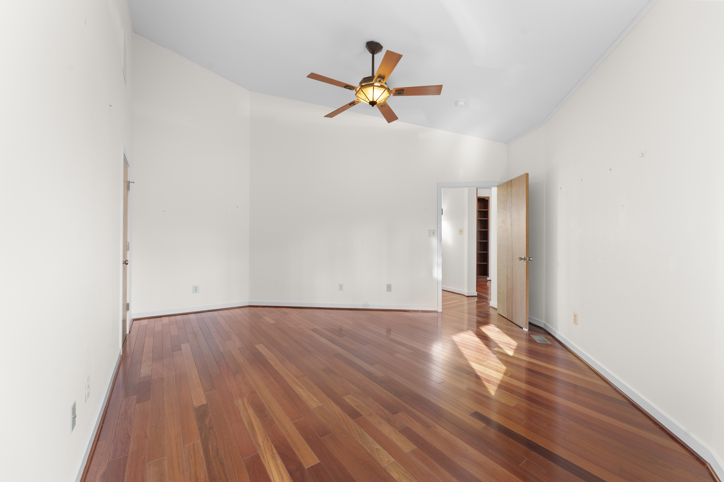 Just beyond the kitchen and dining area is a bright and airy bonus room with a glass sliding door to the deck and a cathedral ceiling. This flexible space would lend itself to use as a media room, office, library, overflow guest room, or all four. There are several built in book shelves and a handy work surface. Continuing around the circle, the primary bedroom is tucked behind the kitchen. It features a fully cedar-lined walk-in closet and a beautifully tiled, inviting ensuite bath. There is a separate soaking tub, walk-in shower, double sinks, and a heated towel rack for that extra feeling of luxury. On the other side of the kitchen, the private second bedroom is down a short hallway that contains the second bath. This bath repeats the beautiful tile work, complete with river stone inlay and luxurious heated towel rack. Next door to this bath is the convenient main floor laundry.