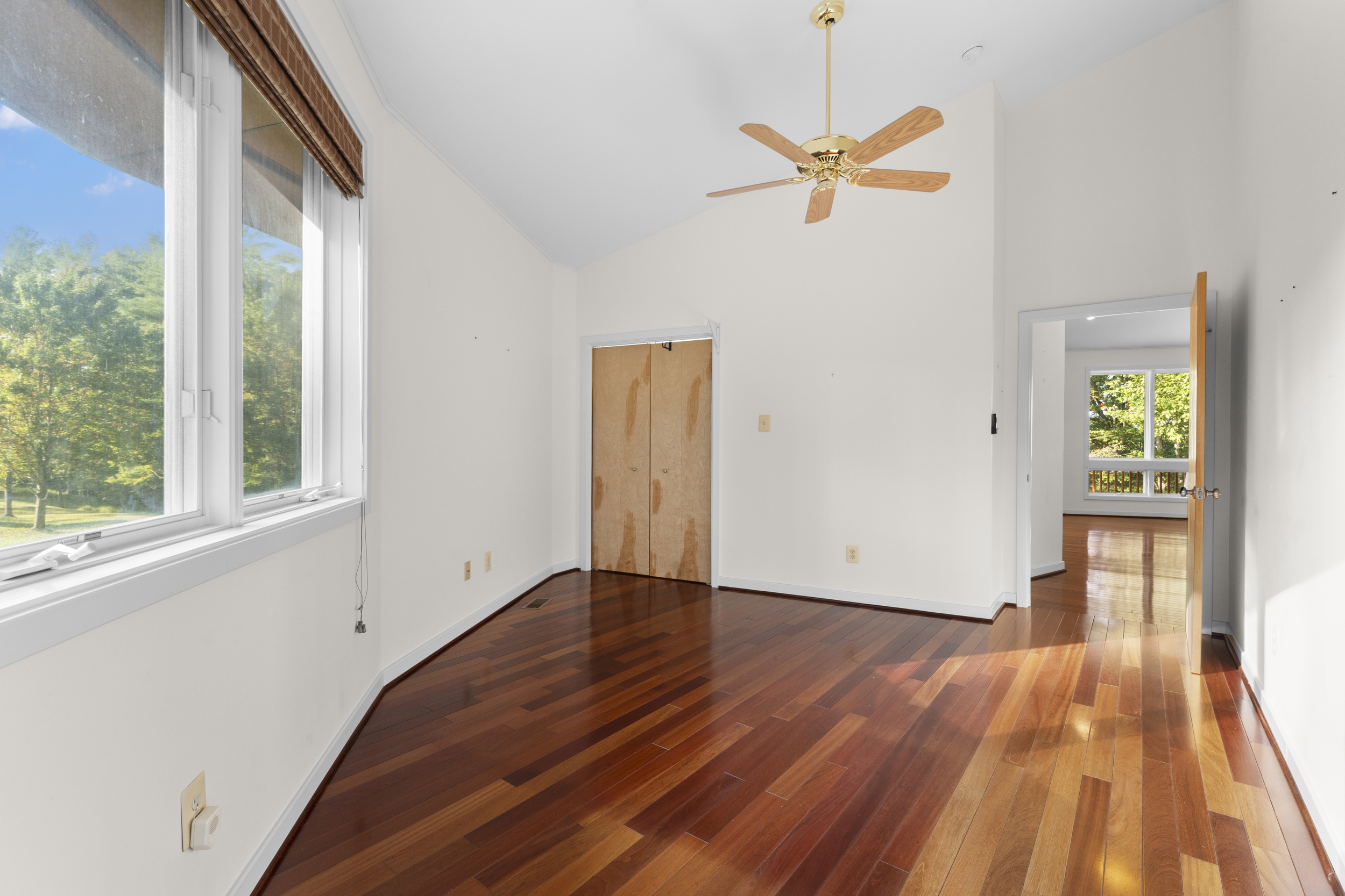 Heading back outdoors, there is a three-bay carport next to the house at the end of the maple tree-lined driveway. The maples provide a graceful green shade in the summer and blazing color in the autumn. The many cherries and other blooming trees put on a spectacular show in the spring. The long front lawn is an expanse of green, dotted with specimen trees along the edges. Just downhill of the house, a path through the mountain laurel invites exploration further afield. Follow the path downhill through fern-covered glades and it reaches a mountain stream, a tributary of the Thornton River. Follow the path when it branches to the left, and it heads back to the edge of the meditation pond. Drawn by the water sources, wildlife enjoys the woodland trails also.